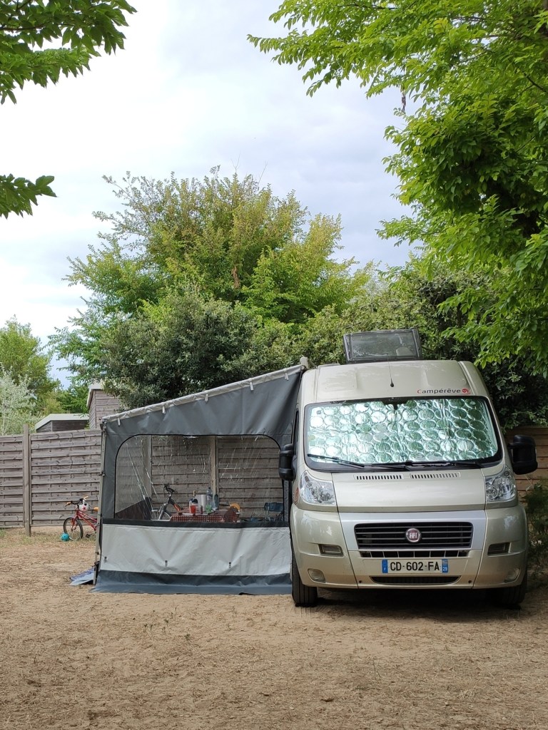 En extérieur, le store est assez grand et permet, à l’aide des bâches adéquats, de se créer une vraie pièce de vie dès lors qu’on se sédentarise un minimum✌🏻